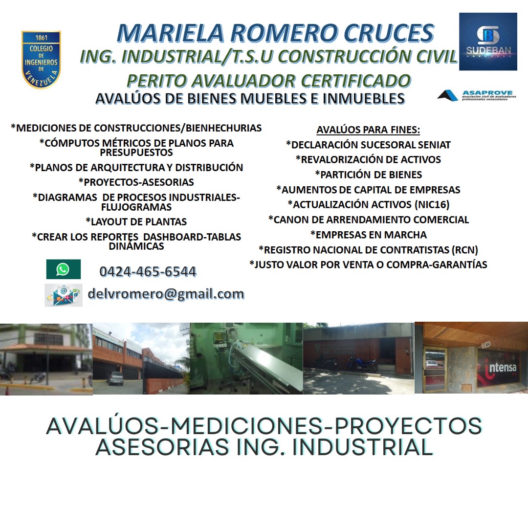 •24 de noviembre de 2025Avaluos para bienes muebles e inmuebles-Perito CertificadoProfesional certificado SUDEBAN atiende tus requerimientos para Avalúos de Bienes Muebles ( máquinas, vehículos, equipos, herramientas) e Inmuebles ( terrenos, casas, aptos, locales, oficinas, edificios, fincas, agroindustria), para justo valor por v...