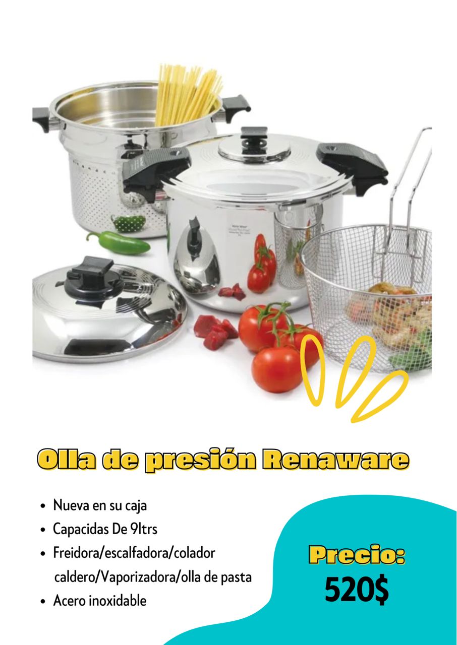•24 de noviembre de 2025Olla de Presión Rena WareOlla de Presión RENA WARE, capacidad de 9lts, trae accesorios,como cesta freidora, escaldadora.